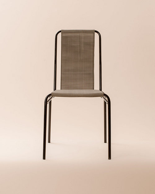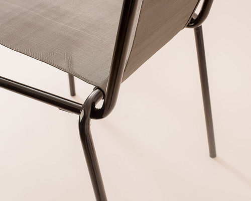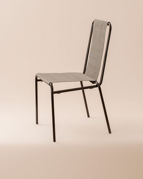One, Calligaris metal edge chair’s renovation out of use was my goal with the replacement of the bottom and the backrest. The original substruction’s back legs lace together in an arched way and meet the backrest’s holding elements, like a supporting handhold. I would have liked to highlight and emphasise this special area for me. In furniture industry, I experiment with unique materials, so my choice was the wire fence. It’s texture was perfect for emphasising the beauty of the metal framework but the wire fence didn’t seem to be able to use for comfortable sitting. I searched further and the new material, with higher weight resistance, which I found great for my imagination, was the twice-seamed steel. I attached the metal-braid to the framework with screws, for this reason, the chair became usable again.