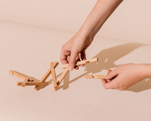 The TRICKY STICKY is an intuitive wood construction system based on the principle of mirror symmetry, helps think abstractly.
